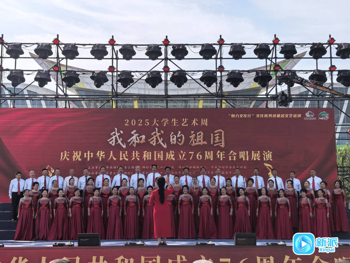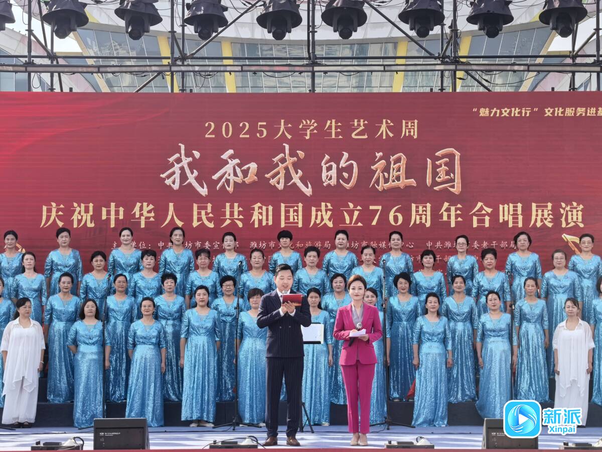 新派訊 以歌傳情,禮贊祖國。10月1日,“我和我的祖國”慶祝中華人民共和國成立76周年合唱展演在濰坊市人民廣場舉行。本次合唱展演作為“藝彩青春 更好濰坊”2025大學(xué)生藝術(shù)周的活動之一,組織我市十余支優(yōu)秀合唱藝術(shù)團體,用嘹亮歌聲傳遞炙熱愛國情懷,向全市人民奉上一場高水平的文化盛宴,線上線下收獲一致好評。