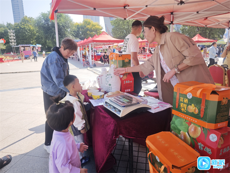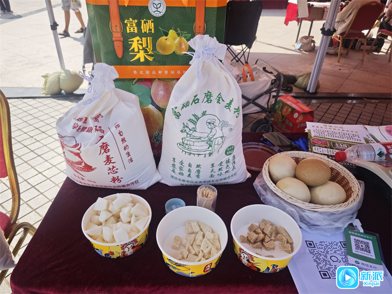 新派訊 9月20日,2025年濰坊金秋好品生活節(jié)現(xiàn)場人頭攢動,濰坊市寒亭區(qū)農(nóng)美果蔬種植專業(yè)合作社展位前更是熱鬧不已。清甜的梨香混雜著富硒石磨面粉的麥香在空氣中彌漫,吸引著往來市民駐足品嘗。