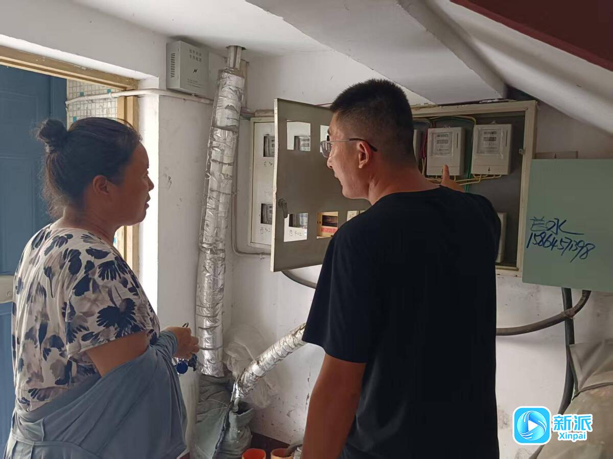 樓棟長(zhǎng)(右)向居民解釋安裝情況。