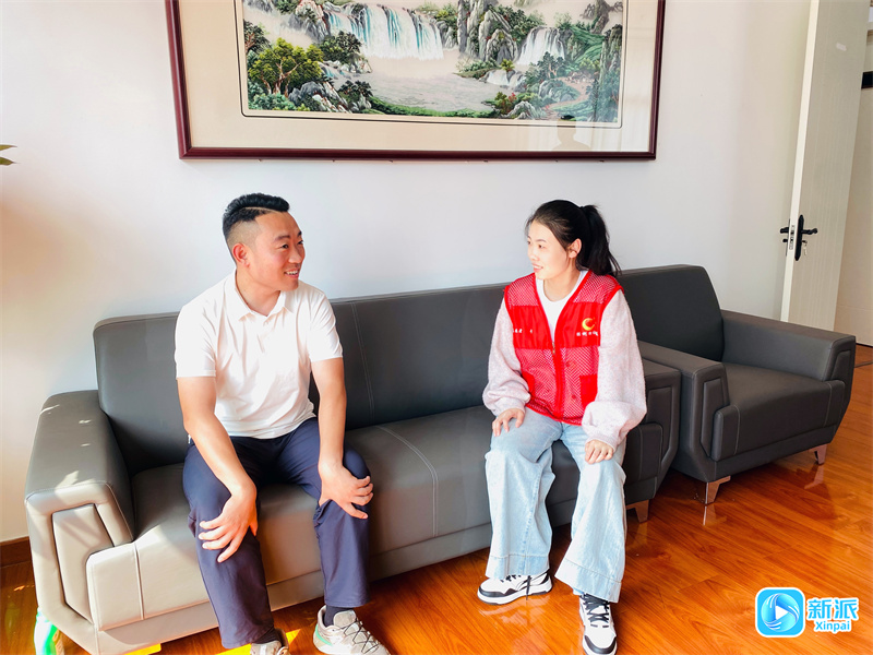 張志濤(左)向社區(qū)工作人員反饋收集到的問題與需求。