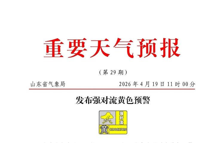 山東省氣象臺于4月19日11時發(fā)布強對流黃色預警:受高空槽影響,預計19日傍晚到夜間我省內陸地區(qū)和各責任海區(qū)自西向東將出現(xiàn)一次強對流天氣過程,并伴有雷電和7~9級雷雨陣風。其中,濱州、東營、德州、聊城、濟南、泰安、菏澤和濟寧最大陣風可達10級以上,局部有小冰雹和小時雨量20毫米以上的短時強降水。全省以小雨為主,魯中和魯南的部分地區(qū)有中雨,累積平均降雨量3~8毫米。
