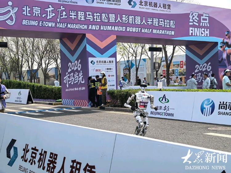 4月19日上午,2026人形機(jī)器人半程馬拉松賽鳴槍開(kāi)跑。來(lái)自山東的人形機(jī)器人“行者泰山”首次參賽,便以穩(wěn)健表現(xiàn)順利跑完21.0975公里,成功完賽。